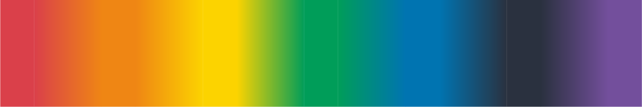 色相の違いは、虹(スペクトル)の色の赤→橙→黄→緑→青→藍→青紫と虹の両端の色である赤と青紫を混ぜることで作ることができます。